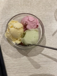 健康診断が終わり、朝食抜きだったので、色んなものが食べられるランチバイキングに来ました。中華フェア中で好きなラーメンをオーダー出来るのや餃子等色々ありましたが、いつものコーナーもそのままあります。スイーツのコーナーも種類豊富なので、ゆっくり楽しめました。シニア料金やLINEクーポンも利用しました。 (訪問:2025/07/03)