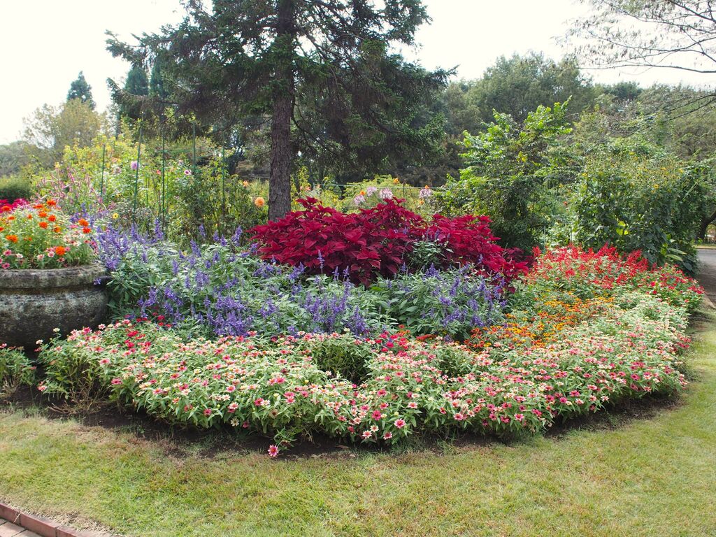 【とちぎわんぱく公園】も秋の装い…コスモスには少し早かったですが…秋の草花の花壇には癒されますね♡ 駐車場から入り口までに並ぶりんごの木も、実が赤く色付き始めていました♪ (訪問:2025/10/05)