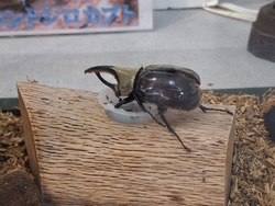 息子と念願の“ヘラクレス幼虫教室”に参加して来ました☆初参加優先なので、予約できて良かったです。始まるまで館内を見て待っていようと思ったら、参加者は無料で、秋の企画展3回目を見られて嬉しかったです。3回目にして気付く内容もあれば、何度も引き寄せられるお気に入りの展示もあり、この時期元気な姿を見られるのは貴重なカブトやミヤマの生体にも触れ、また楽しめました。講師の方からヘラクレスオオカブトの生態と幼虫の育て方について学び、幼虫と飼育ケース(マット入り)を貰いました。参加費1800円でお得です。大きな幼虫にビックリ!無事に孵化してくれる事を願いながら大切に育てます。次回の企画展の予告も出ていて、木で作った昆虫展も楽しみです(^ー^) (訪問:2025/10/18)