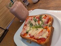 店内はとっても落ち着いていて居心地がいいです。店員さんがみなさん雰囲気がよくて素敵です。ピザトーストといちごバナナスムージーを。厚切りのトーストでピザトーストに。いちごバナナスムージーは大きいグラスにたっぷりと。ゆっくりできました。駐車場はチケットをもらって3時間まで無料です。出庫前に清算が必要です。 (訪問:2026/01/27)