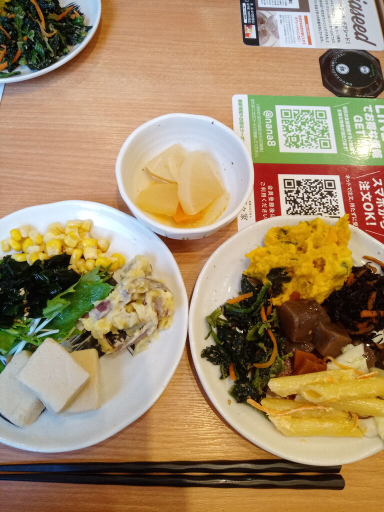 惣菜バイキングを食べたくて来ました。かぼちゃ&さつまいもサラダはデザートみたいな感じであまくて美味しかったです!冷奴、蒸しパンも美味しくておかわりしました。たくさん食べても野菜がメインなので、ヘルシーなのが嬉しいです! (訪問:2025/09/23)