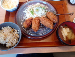 今年も秋メニューが始まりました。北海道産秋刀魚と牡蠣フライ定食。秋刀魚は特大という言葉に惹かれます。W盛りで注文できるので、旬の味覚をたっぷりと味わうことが出来ました。大根おろしと醤油で、口の中をサッパリとさせながら食べるとより美味しいですね。牡蠣もサクッとジューシーで旨味が溢れ出てきます。バイキングコーナーでは野菜をたっぷり食べられるので、食事のバランスもいいですね。 (訪問:2025/09/07)