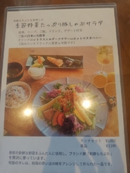 ずっと気になっていて、出先からの帰り道に予約なしでしたが運よくすぐに案内されました。他の空いてる席は予約席だったのでタイミングよかったです。豚しゃぶサラダのランチは、本当に野菜たっぷりで豚肉もたくさん盛られてました。見た目も綺麗、ヘルシーで美味しかったです。デザートの黒蜜豆乳プリン(?)も甘すぎず、コーヒーはしっかり濃いめで美味しかったです。ナビですっごく狭い道を案内された時は不安でしたが、駐車場もたくさんあって良かったです。次はハンバーグかメカジキのランチが食べたいです。 (訪問:2025/11/19)