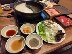 お盆付近の3連休だし、夏休み家族連れで混んでそう!と思ったのですかいらーくグループのweb登録をして、予約して行きました。店内入口すぐに機械でチェックインができて、スムーズに席に着くことができました。北海道産牛肩ロース と赤城山麓豚が食べ放題のコースにしました.柚子塩だしと、定番の白だしにしました。お肉も野菜もしゃぶしゃぶしたらとてもおいしく、食べすぎちゃいました!ビュッフェコーナーにあるカレーが柔らかいお肉が入っていて美味しかったです❤︎ソフトクリームやコーヒーゼリーのデザートも充実していて美味しかったです!お会計をしたら次回使えるクーポンを貰えたのでまた行きたいです( ◠‿◠ ) (訪問:2025/08/11)