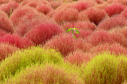 コキアを観に行ってきました。一面に広がる、赤いフワフワのコキアが、とても素敵でした。グリーン~赤い~ゴールドと、コキアは、短い間にどんどん姿を変えますが。少しゴールドコキアが始まりつつあり。今年の赤いコキアの見頃は、そろそろ終わりかしら?畑に植わっているので、近くでよくみたい方は、靴に注意してくださいね。 (訪問:2025/09/20)