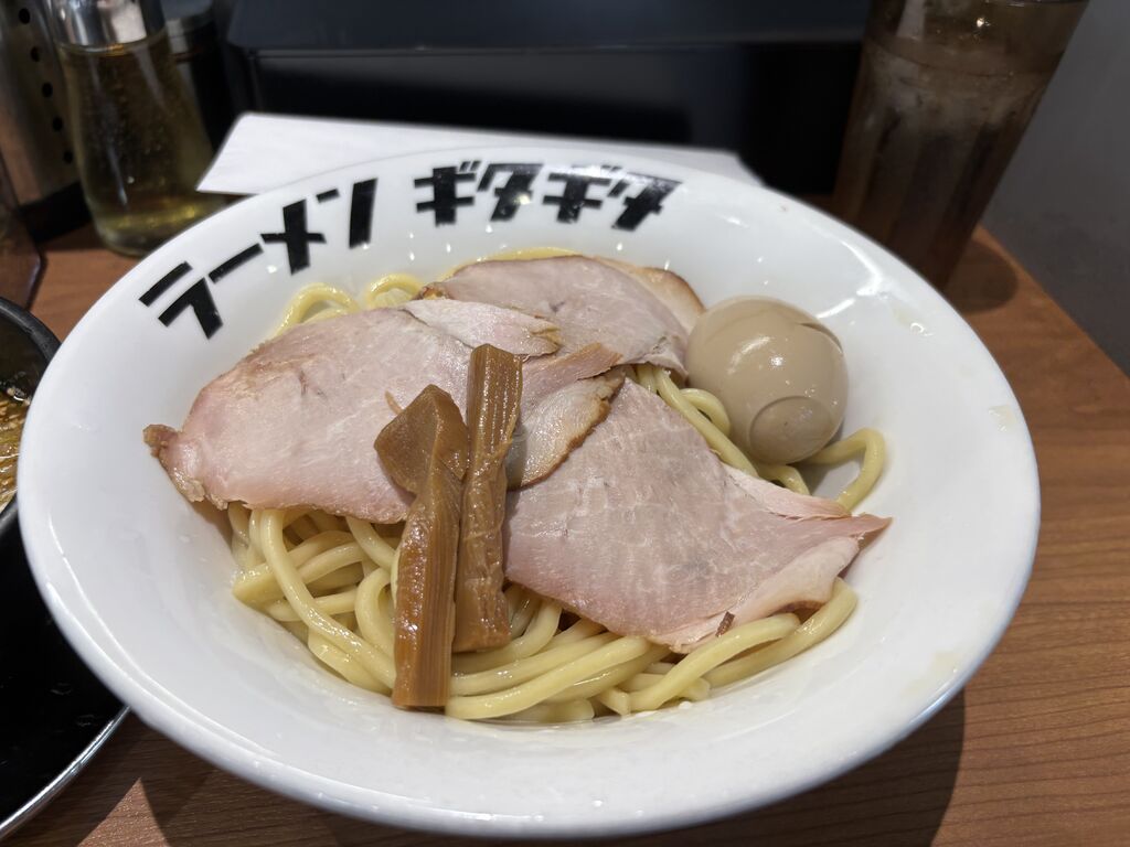会社帰りにラーメンギタギタさんへ。久しぶりのツケメンG(並)もっちり平打ち太麺、少し濃いめの味付けのスープが最高です!麺が美味しいのでそのまま食べても充分美味しいです!期間限定で9月30日までなので期間中は出来るだけ多く頂きたいと思います。 (訪問:2025/09/05)