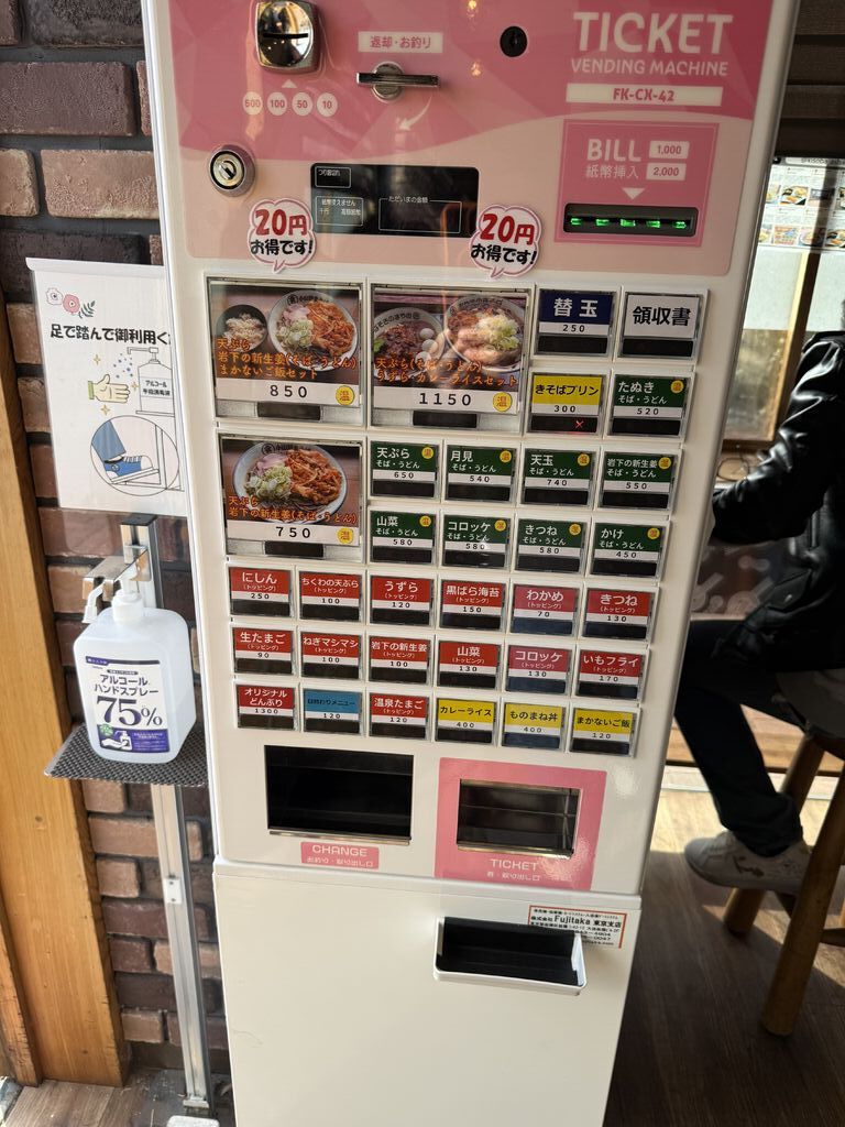 初訪問しました。11:20に訪問 ちょうど満席でしたが直ぐに席が空き座れました。懐かしいの小山駅のそば。券売機で天ぷら岩下の新生姜を選択。750円。食券を渡すとそばかうどか聞かれます。私はそばをお願いし直ぐに手際の良い調理。懐かしいそばと麺つゆ。美味しくいただきました。ごちそうさまでした。 (訪問:2025/11/24)
