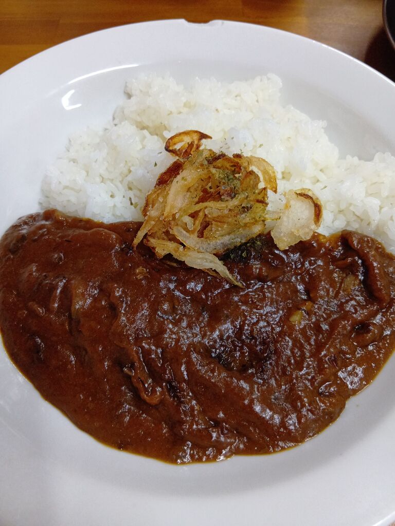 ラーメンたかはしに行ってきました。今週の週替り丼は牛カレーでした。お肉は柔らかくて美味しく、上に乗っている揚げ玉ねぎもアクセントになっていて、カレーによく合い最高でした。ラーメンもいつも美味しくて最高です。皆さんも是非行ってみて下さい。 (訪問:2025/09/07)