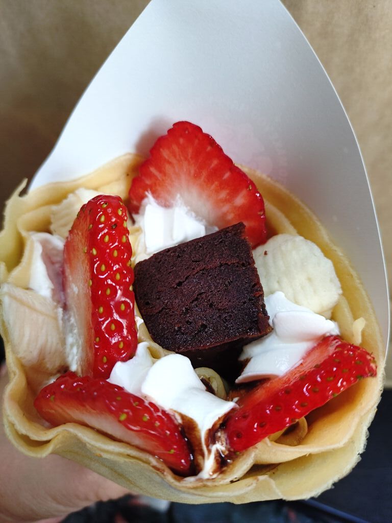ラッキーな事に、偶然クレープの日セールにお店の前を通りました。12/8〜12/12まで490円以上のクレープが全て490円でした。キャラメルナッツアイスクレープを注文。美味しかったです。スタッフさんワンオペで、こなして頑張ってました。 (訪問:2025/12/10)