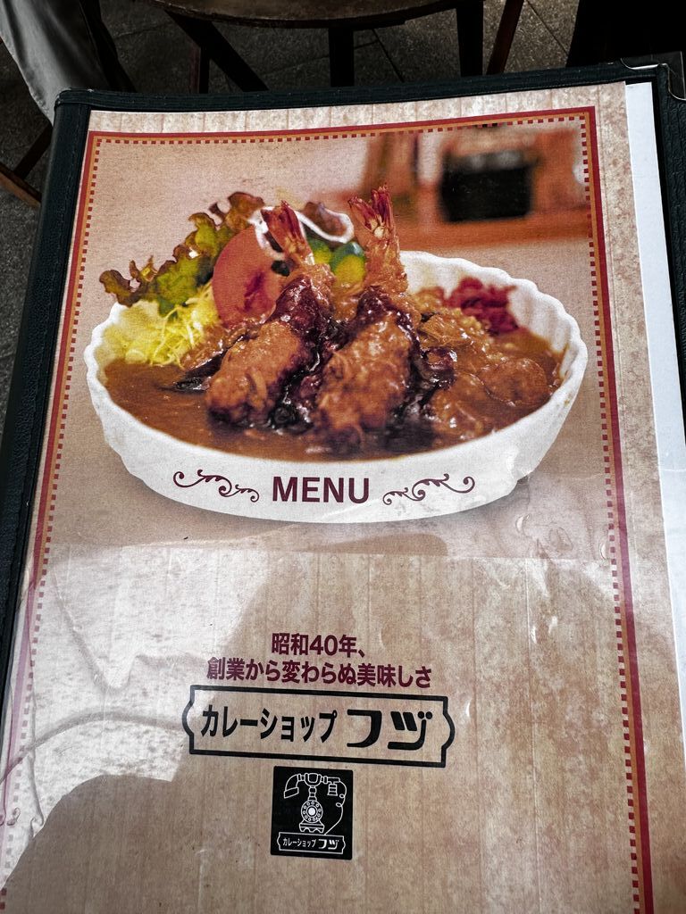 ランチでフジさんに行ってきました。たくさんのお客さんがいましたが、回転が早いのでそれほど待たずに入れました。どれも美味しそうなメニューなので迷いましたが、エビホタテカレーにしました。ホタテの大きさにビックリです。普通盛りでもそれなりの量でしたが、美味しいカレーなので大盛りにすべきでした! (訪問:2025/10/09)