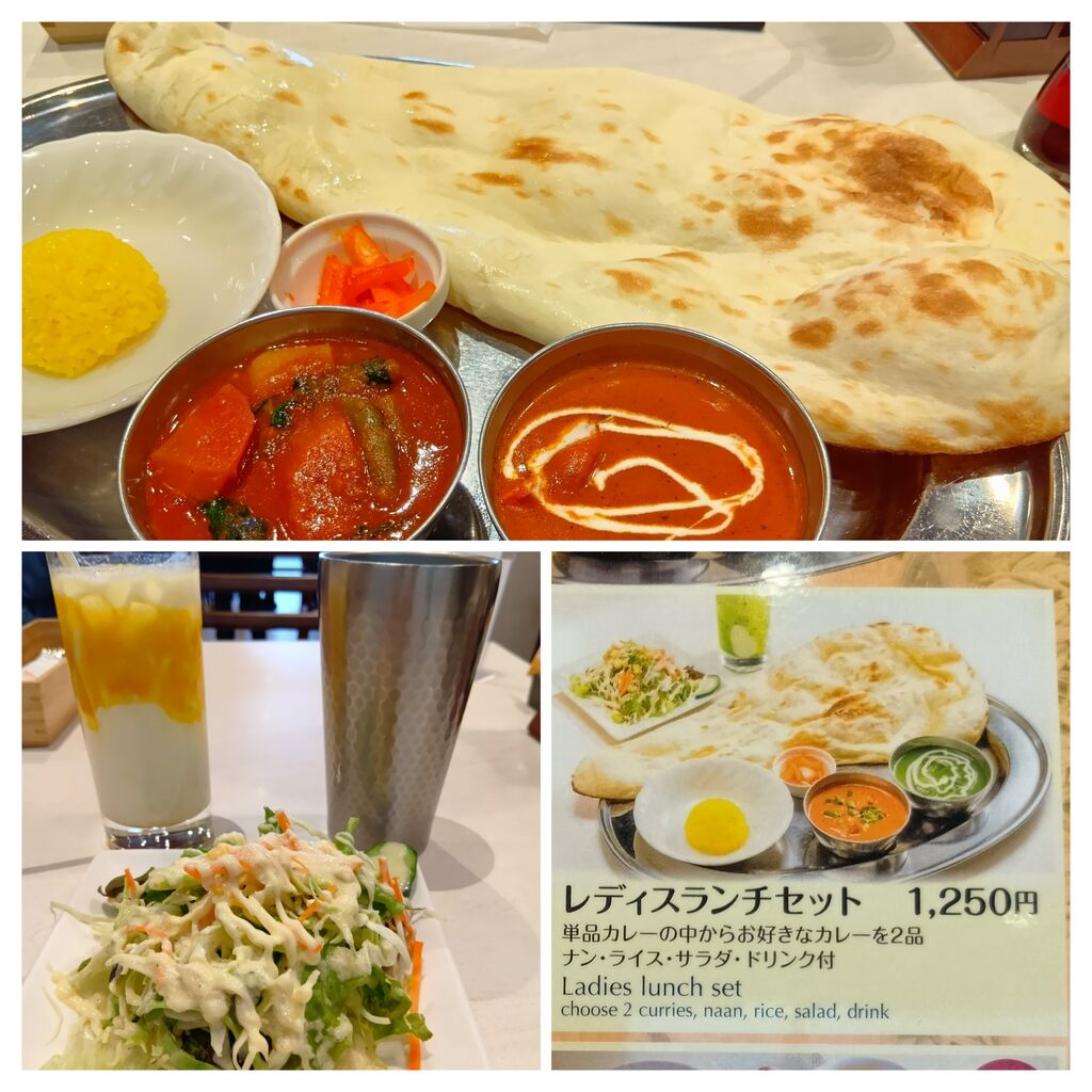 息子と映画に行った際に、ランチに寄りました。息子のリクエストです。ランチセットのレディースセットにしました。バターチキンカレーと野菜カレーの2種類をチョイスしました。注文はスマホでします。ナンがボリュームがあって、カレーもスパイシーで、とても美味しかったです。 (訪問:2025/08/26)