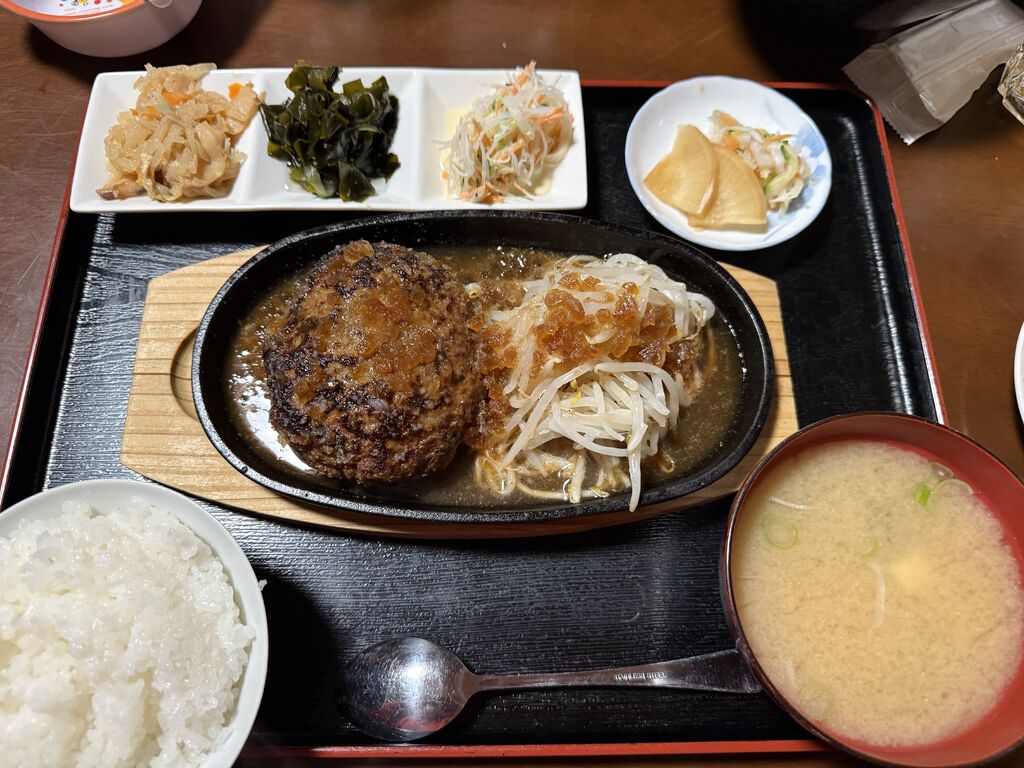 親戚の集まりで伺いました。私はハンバーグのニンニクソースを注文。ハンバーグは柔らかくてソースもたっぷりでおいしかったです!大きいので「食べられないかも。。。」と思いましたがおいしかったので完食しちゃいました。家族が豚ヒレ鉄板焼きを頼んでいて少しもらいましたが、めちゃくちゃ柔らかくておいしかったです。次はこれにします。デザートのシフォンケーキもふわふわでおいしかったです!味も量も大満足でしたが、一番は店員さん達が、皆さん温かくてお腹も心もいっぱいで帰ることができました!ご馳走様でした! (訪問:2025/12/20)