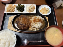 もんみやという雑誌で見たお店です。一度近くを通った際車がいっぱいだったので電話予約をして伺いました。案の定オープン前から沢山の人が待っています。オーダーと会計を先にするシステムでオーダーが済むとドリンクバー用のカップをもらい席につきます。私は雑誌にあったハンバーグをオーダーしました。かなりの大きさのハンバーグが鉄板にのって登場!トマトソースにとろとろチーズが最高です。ハンバーグも肉肉しい。味噌汁ご飯がおかわり出来ましたがハンバーグが大きくて無理でした。混雑していて席と席の間のスペースが狭くドリンクのおかわりやトイレに行くにも少々難儀しましたがそれだけ人気店という事ですね。 (訪問:2026/03/25)