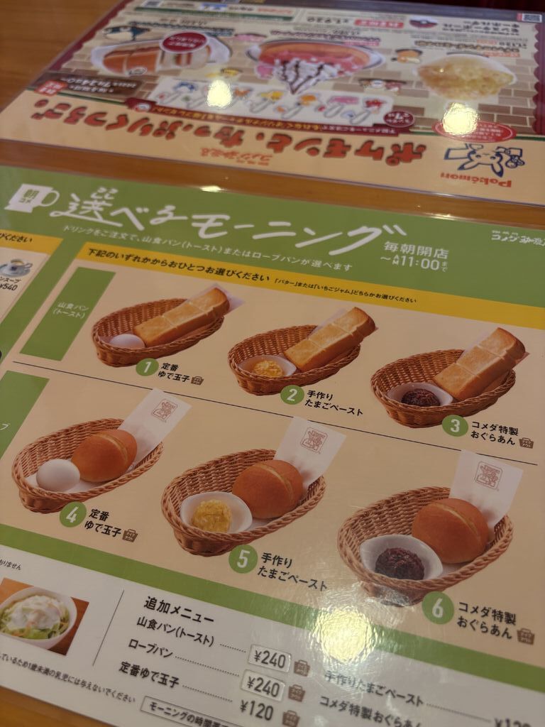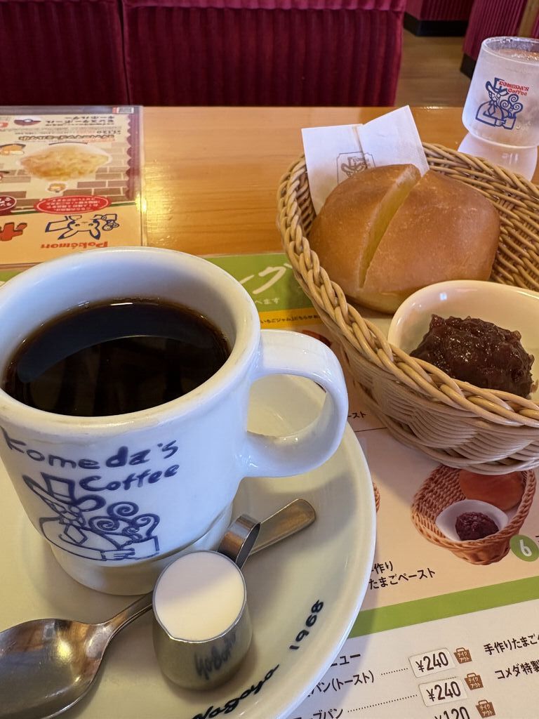 モーニングを満喫してきました。11時までにドリンクを注文するとモーニングサービスが受けられます。トースト、ゆで卵、ジャムなどのメニューが付いてくるのでとてもお得です。ドリンクは平日限定のコメ黒をお願いしました。コメダ史上最も贅沢なコーヒーということです。香り高くコク深い味わいでした。落ち着いた店内の中、居心地の良い雰囲気で素敵な時間を過ごすことが出来ました。 (訪問:2025/01/07)