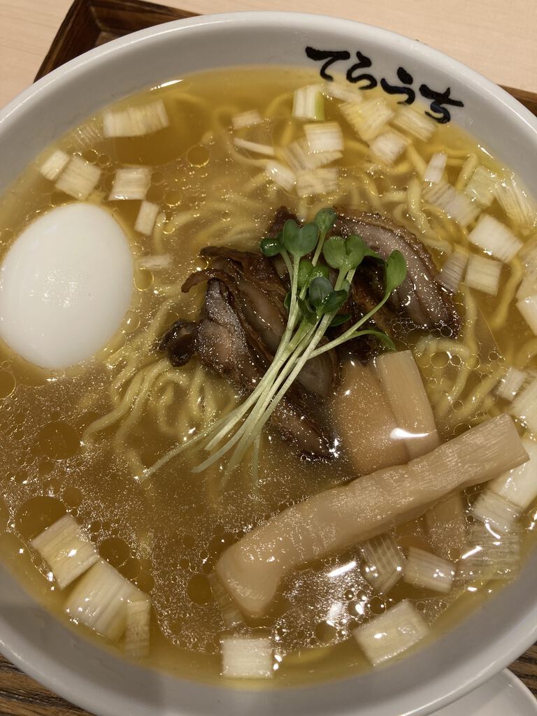 開店前から気になっていたお店…『磨宝の鶏中華そば てらうち』さんへ突撃です(^o^)v。。。こちらはあの「卵明舎」さんが手掛ける鶏を存分に味わえる中華そば屋さんです(^o^)/。。。今日は【塩 中華そば (大盛)¥1,080(普通は¥930)】をチョイス!…また、卵黄で食べる【月見餃子(焼・卵黄たれ付) 3個¥300】もオーダーしました(*^^*)。。。中華そばのスープは鶏と水のみで作る純鶏スープで、鶏の味わいが凝縮されていて旨いですねェ。美味しい中太縮れ麺は自家製の卵麺だそうで、シコシコでツルツルとスープが絡み口の中へと消えていきます(*^^*)。。。荒めに四角く刻まれた白ネギのシャキシャキした食感と藁焼きの親鶏叉焼の歯応えと深みの有る味わい、極太メンマのサクッとした歯応えで箸が止まりません!【月見餃子(焼・卵黄たれ付) 3個¥300】は、滑らかでジュ~シ~ィ!卵黄を付けて食べる餃子がこんなに美味だとは初体験の美味しさです(*´∀`)♪。。。純鶏スープに卵麺、磨宝の塩卵・藁焼き鶏叉焼…鶏の味わいを余すとこなく存分に味わうことが出来ました(*´ω`*)。。。次は、塩ラーメンと共に噂の“TKG”も味わってみたいですねぇ(*^^*)。。。鶏の旨味を存分に味わうことが出来る『磨宝の鶏中華そば てらうち』さん!一度ご賞味下さい!お勧めのお店です( ^-^)ノ∠※。.:*:・'°☆ (訪問:2025/02/16)