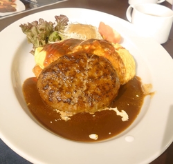 2024年7月20日にオープンした栃木市のカフェに初訪問です。注文は私が「ハンバーグ&エビフライ 1,300円」ライス、スープ付。「クリームあんみつ 700円」抹茶付。妻が「焼きカレードリア 1,200円」サラダ、スープ付。「渋皮栗のモンブランセット 800円」ホットコーヒーを選択。洋食屋の人気メニューのハンバーグとエビフライいただきました。サクサクのエビフライ美味しかったです。 (訪問:2024/09/22)