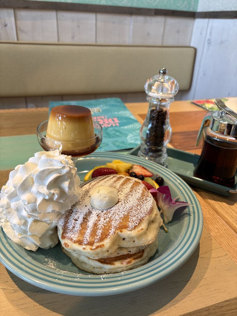 初めて来店しました。テラス席ならすぐに案内してもらえると聞き、お天気もよかったため、テラス席を選びました。おしゃれな店内は広々としており、ハワイの雑貨も購入することができます。料理は、パンケーキとエッグベネディクトをシェアしました。どちらもおいしくて、提供スピードも早かったです。店員さんも元気で、お店の雰囲気と合っていました。また行きたいです。 (訪問:2026/02/22)