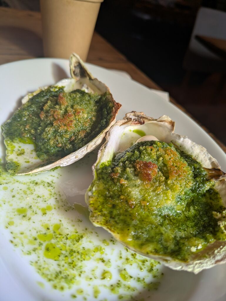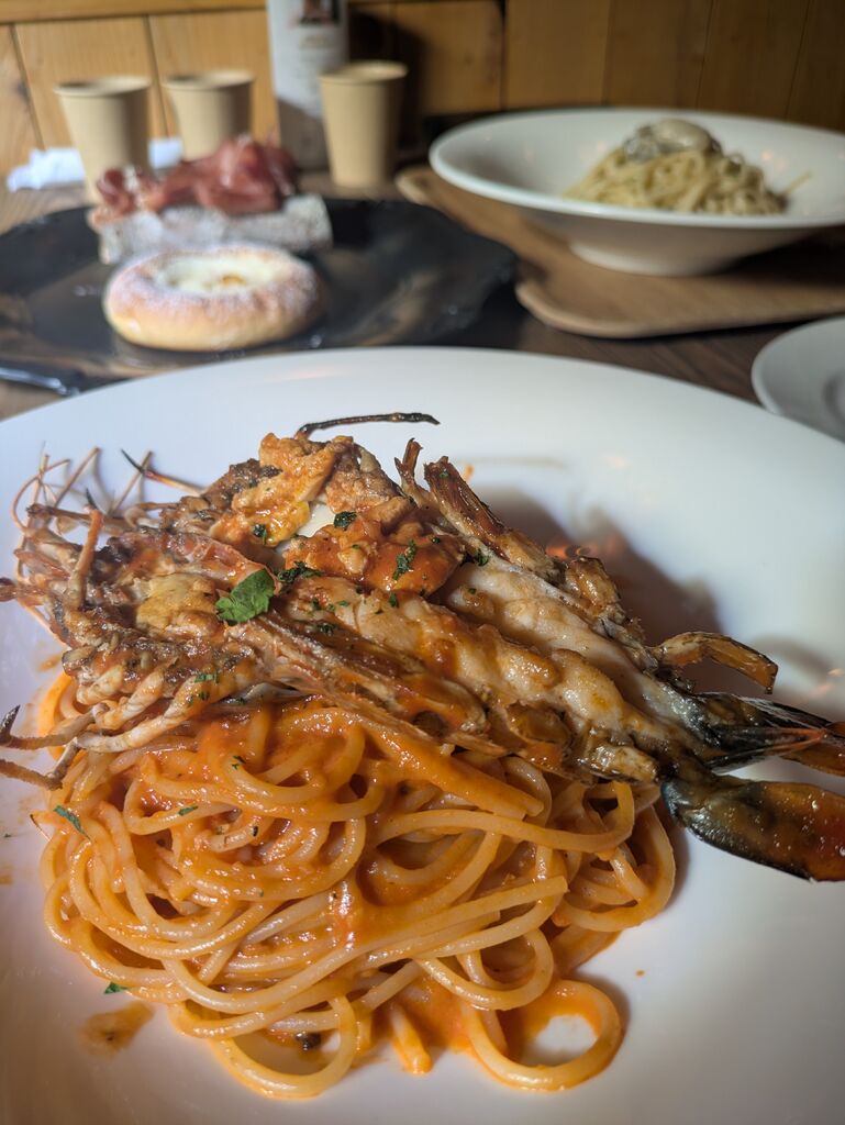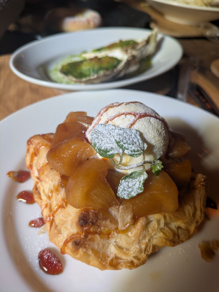 那須ガーデンアウトレットでお買い物の途中、ランチにお邪魔しました。フードコート方式でこちらのパスタと牡蠣の香草焼きとアップルパイを購入。手長海老のトマトソースパスタは海老がおおきい!アップルパイはシナモンがきいたリンゴがゴロゴロ生地がサクサク!牡蠣は香草ソースがたっぷり!ボエムさんのメニューだけを食べる人は専用のスペースがあります。(Cafe La Bohème Nasu カフェ ラ ボエム) (訪問:2026/02/01)