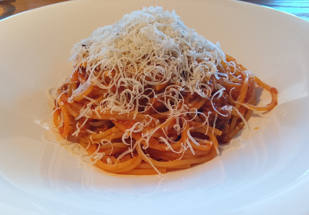 那須パラダイスヴィレッジに初めてお邪魔しました。イタリアンのラ・ポエムでパスタのボロネーズ(大盛り)を頂きました。目の前で店員さんがチーズを好きなだけ削りかけてくれます。パスタは優しめな味付けでした。 (訪問:2026/01/04)