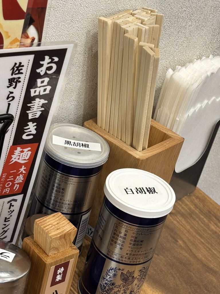 初めて行きました。店内のボードに名前を書いてから外に並びます。店内待ちは八人のみ。テーブルは二つで後はカウンターです。LINE友達登録で抽選で餃子当たります。はずれてもトッピングサービスがあります。佐野ラーメンと餃子を注文。美味しかったです。支払いは伝票のQRコードを読ませてセルフ支払い。現金のみです。 (訪問:2026/01/11)