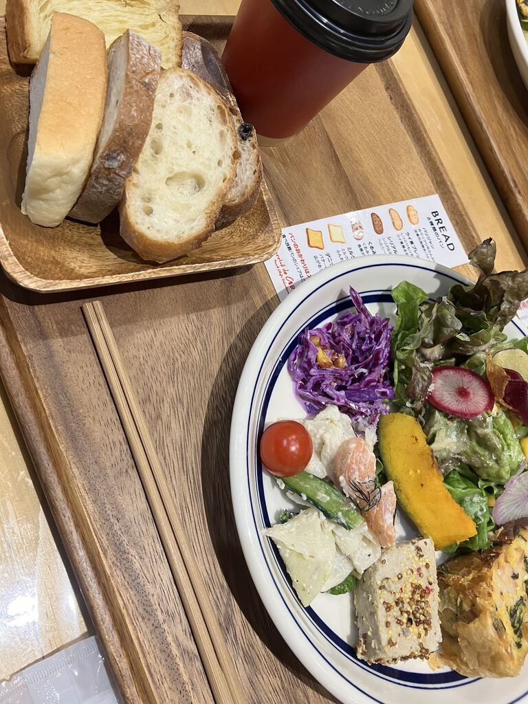 晩御飯にと前回頂けなかった『サラダデリプレート1210円』を目当てに18時頃お邪魔しました。デリ三種はその日の日替わり。なにがついてくるのか楽しみにしつつお席でスタンバイ。呼び出しブザーがなって取りに行くとどれも魅力的で、前回頂いた美味しいデリも入っておりテンションアップ。パンはもともと6種類盛られていて、全部でも好きなものでもおかわり自由。キッシュも美味しく、サラダのドレッシングも絶品☆お野菜中心なのでヘルシーだし、たっぷりお野菜が頂けて大満足‼紫キャベツのデリ、すごーく好みです^^パンもどれも美味しく魅力的で、ライ麦とデニュシュのがとにかく気に入ってしまい、おかわりして楽しんでしまいました。パセオのクーポンでドリンクサービスも頂けてとっても大満足♪是非またお邪魔して他のデリを持ち帰ったり、イートインしたりと楽しみたいです。 (訪問:2026/02/09)