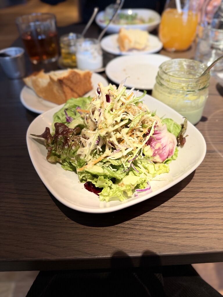 NEW2026年1月23日ホテルTHE KNOT内にオープンするレストランのプレオープンに予約して訪問しました。注文したのは「リースサラダ 2,200円」パン、ドリンク付き。野菜とゴマのドレッシングが美味しいです。罪悪感なくて嬉しいランチでした。 (訪問:2026/01/17)