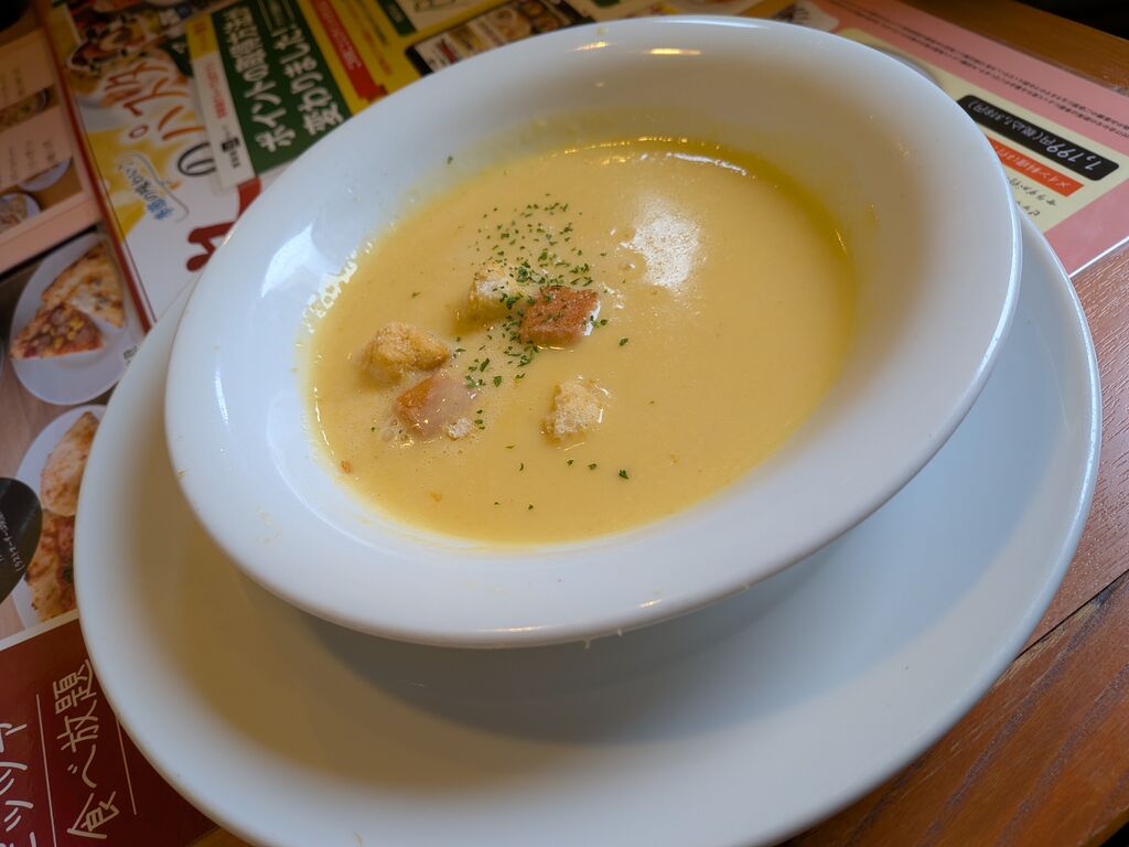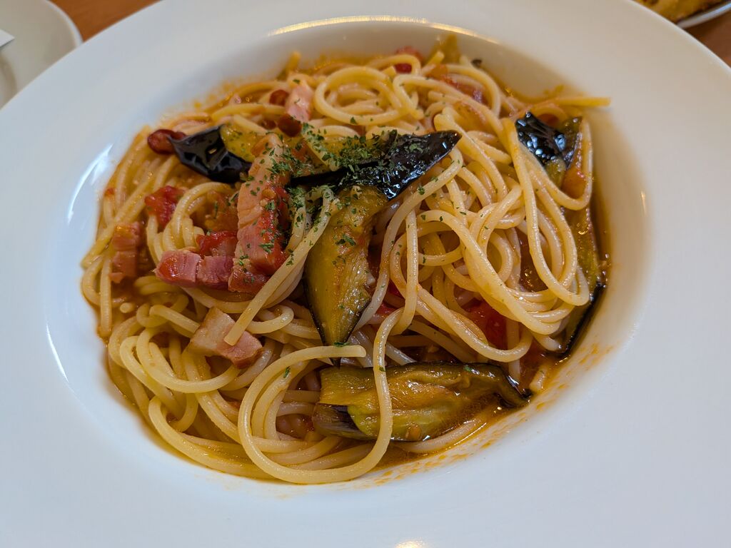 気になっていたイタリアンのお店で初来店です。ファミリーレストランぽいけどクオリティーはやや高い感じでしょうか。ナスとベーコンのシチリア風のトマトパスタとマルゲリータ、コーンスープを注文。なかなか美味しかったのでまた機会があればまた行きたいです。ごちそうさまでした。 (訪問:2026/02/11)