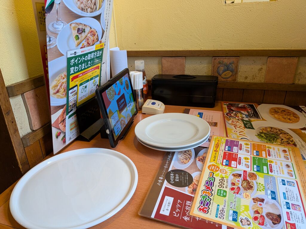 ディナータイムで久しぶりに行きました。ピザ食べ放題コースにしました。メインの料理は配膳ロボットが運んでくれて、ピザは店員さんが回ってきてくれます。お腹いっぱい食べれました。スパゲティも美味しかったです。 (訪問:2025/09/11)
