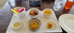 お友だちとディナーで伺いました。2500円で前菜三点、サラダ、メインディッシュを一品、デザート、ドリンク、焼きたてピザ食べ放題がついてきます!個人的には四種のチーズピザが大のお気に入りです。数種類から選ぶことができるのですが、ハーフ&ハーフにすることもできました♪大満足です! (訪問:2023/12/22)