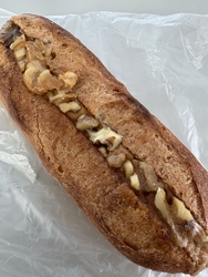 久しぶりに来店出来ました。15時過ぎだったので売り切れも多かったけれど、チーズノエルや食パンが残っていて良かったです。他にチョコデニッシュやカレーパン、キノコのタルティーヌを購入。カレーパンは紙袋に入れたまま食べられる様に半分が切れる様になっていました。辛すぎず子供も喜んで食べていました。キノコのタルティーヌは下に美味しいベーコンも入ってタルタルソースがとても美味しかったです。チョコデニッシュは中のチョコが生チョコの様な食感でしっかり入って、また食べたいと思いました。 (訪問:2025/03/20)