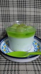 グリーンの丸い物はメロン。その下はムース、1番下はヨーグルトです。甘味と、酸味がバランスの良いデザートです。食後にさっぱりといただきました。お土産としても喜ばれる商品が沢山並んでいます。季節毎に期間限定で販売される商品も毎回楽しみ♪ (訪問:2026/01/17)
