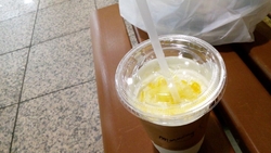 柚子は、年内いっぱいいただけるようです。また、今日はストロベリーとめっちゃ迷いました。お値段は、柚子が740円、ストロベリーが760円。リンゴとグレープフルーツが入っている柚子にしました。酸味と甘味がバランス良くて美味しい飲み物です。ごちそうさまでした。 (訪問:2025/11/24)