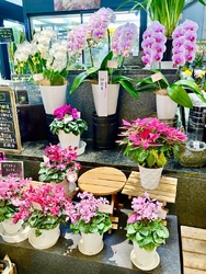 一足早く春の花々を見つけて早速《リンファンダマークチューリップ・スイトピー・サンダーソニア》を我が家に招きました。生けた途端にイッキに部屋が明るくなりました。そしてスイトピーは、とても香りがいいです。この日は、種類別の胡蝶蘭やシクラメンそれにデイジーがお店の前にイキイキと咲いておりました。見ているだけでも幸せな気持ちになります(ღˇ◡︎ˇღ)【カジュアル】 (訪問:2025/12/20)