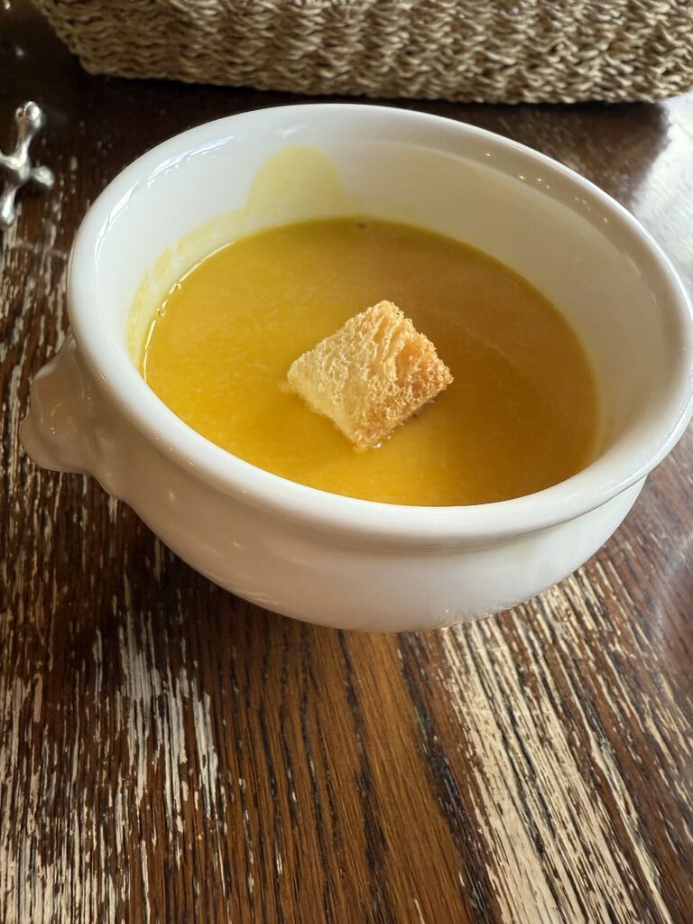 日曜14:30訪問。注文は本日のパスタ<ほうれん草のカルボナーラ>と<デサート/オレオチーズケーキ>を。カルボナーラにほうれん草が入ると一味違って美味しいです♪スープもかぼちゃの甘みたっぷり。デサートまで見た目も味にも大満足◎そしてクリスマスの飾り付けが余りにも素敵で、撮影許可をいただき写真を撮りました! (訪問:2024/12/01)
