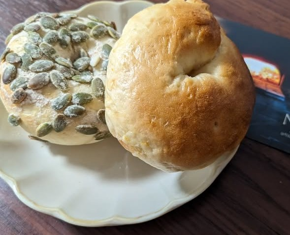 NEWカボチャの種たっぷりのベーグルとオレンジのベーグルをいただきました。なかなか出会えないのでいただけてうれしいです。ムチムチでどちらもおいしかったです。カボチャの種の食感がとても良かったです。 (訪問:2026/03/12)