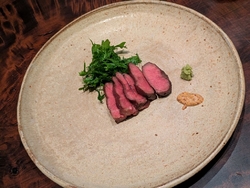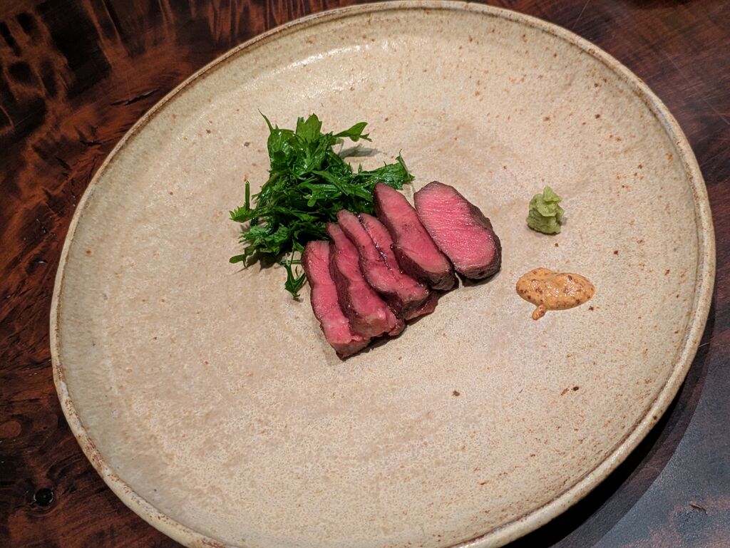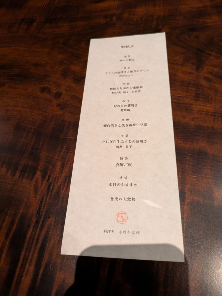 職場の食事会で利用しました。先付から椀物、主菜、飯物など季節の食材を生かした料理はどれも美味しく、器も含め美しさがありました。焼物の鰻白焼きと焼き落花生豆腐や主菜のとちぎ和牛みすじの薪焼きは特に美味しかったです。みすじは適度に脂がのっており、柔らかさと旨味を感じられました。ドリンクもワインや日本酒の取り揃えもよく大満足です。以前より気になっていたお店だったこともあり、期待値を上回る美味しい料理と素敵な空間で楽しい時間を過ごせました。 (訪問:2025/09/06)