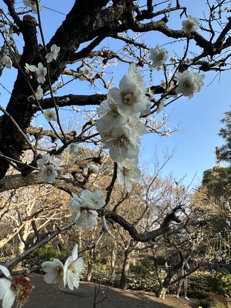 お散歩していると、梅が綺麗に咲いてました!青空に白とピンクの花が映えてました。カメラを向けている方々もいて、春が近づいているな〜と感じました。 (訪問:2026/02/22)