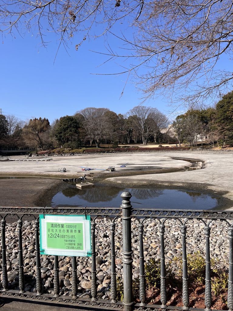 日中は穏やかな暖かさで、思わずほっとする陽気。ふらりと宇都宮中央公園まで散策してきました。園内をのんびり歩いていると、シンボルでもある噴水付きの大池にまさかの“水がない”光景。どうやら清掃のために水を抜いているようです。いつもは優雅に泳ぐ鯉たちもどこかへ避難中なのでしょうか。見慣れた景色とはまったく違う、ちょっとレアなタイミングに遭遇。これもまた散策の楽しみですね。次は水をたたえたいつもの風景も見に来たいと思います。 (訪問:2026/02/18)