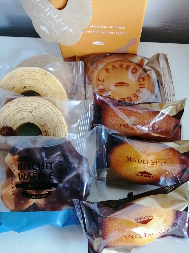 「おやつにどうぞ♪」…と戴きました。開けてみると[ベイクドチーズタルト][ビスキュイワッフル][マドレーヌ][フィナンシェ][バウムクーヘン]が入っています。わぁ~(‘0’)どれも美味しそう♡まずは[チーズタルト]から…まろやかな酸味のクリームチーズが濃厚で香ばしいタルト生地と相まって美味しいです。可愛らしいパッケージなので手土産に良いですね♪ありがとうございました(˶ᐢᴗᐢ˶) (訪問:2025/11/01)