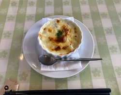 前からお店の名前は知ってましたが場所的に来たことなく今回仕事で通りかかったので寄ってみました。ランチメニュー色々あって悩みました今回は週替わりグラタンのエビグラタンを頂きました。サラダ、スープもついて850円とお手頃でした。よく言えばマカロニが入ってればよかったかなあ?という感想ですがこちらの売りはきっとハンバーグなのかな?一緒に行った同僚はチキンソテーのセット食べてましたがこれまた美味しそう。なかなか来る機会無いですがまた機会があればハンバーグかソテーにしてみようかなと思います。ご馳走様でした。 (訪問:2024/07/02)