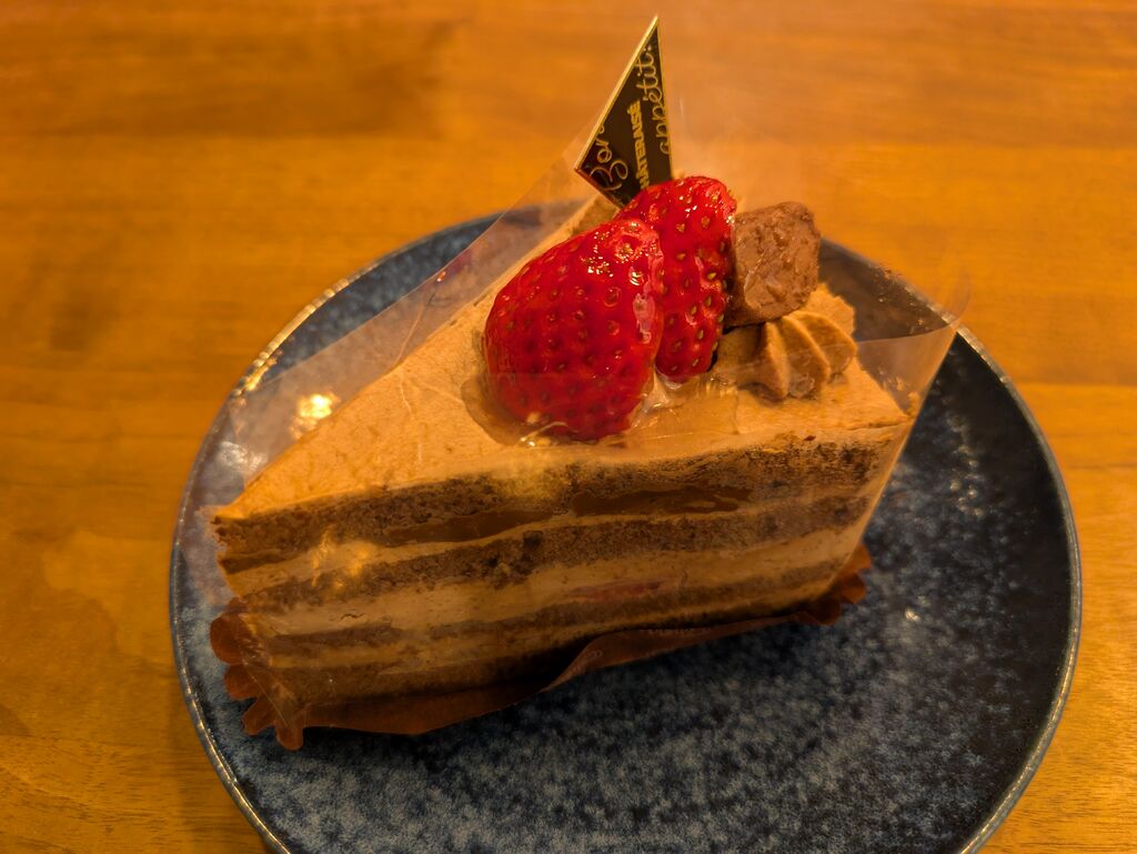 甘い物が食べたいっ!家族みな気持ちが合いました。各々好きなケーキを選んだらチョコレート系のケーキでかぶってしましましたwクレープオキャラメルは初めて食べましたが、ほろ苦さを感じるやや大人な味わいでした。相変わらず娘はかわいいくまちゃん推しで、とても嬉しそうに食べていました。食べたい時に気軽に買いに行けるので助かります。 (訪問:2026/03/01)