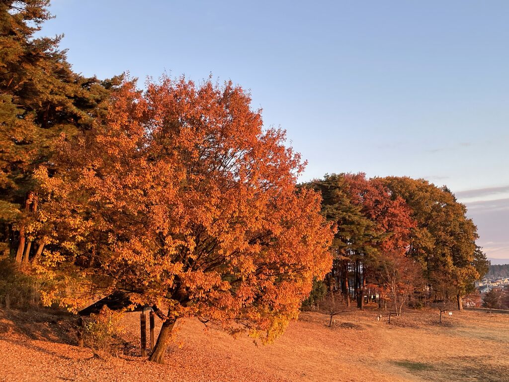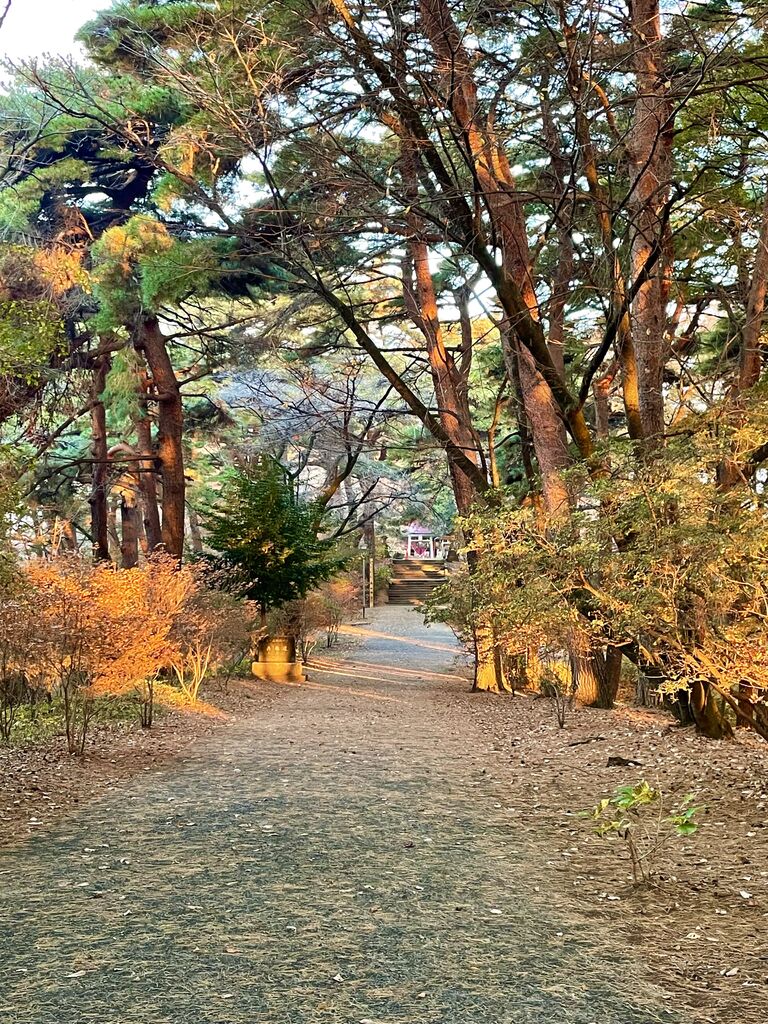 烏ヶ森公園を朝のウォーキングです。寒いですね。丘になってるので、北風が吹き抜けます。ここの参道は赤松が多いので、紅葉する木は多くはないですが、北側の斜面は紅葉を楽しめます。朝日に映えて綺麗ですよ^_^ (訪問:2025/11/27)