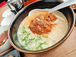 久しぶりの龍ノ髭さんに連休真ん中に行ってきました。混んでいたので名前を書いて車で待機。順番が来るとスタッフさんが車まで教えに来てくれました。白味玉入りとハイカラ、餃子を注文。ラーメンは大盛り無料だったので、どちらも大盛りにしました。餃子は一口サイズなので子供でも食べやすいです。卓上の辛子高菜はパンチのある辛さですがハマる辛さで豚骨との相性バッチリです。支払いは現金のみで注文は卓上のQRコードからスマホで注文しますが、直接スタッフに口頭での注文も可能なようでした。 (訪問:2025/07/20)