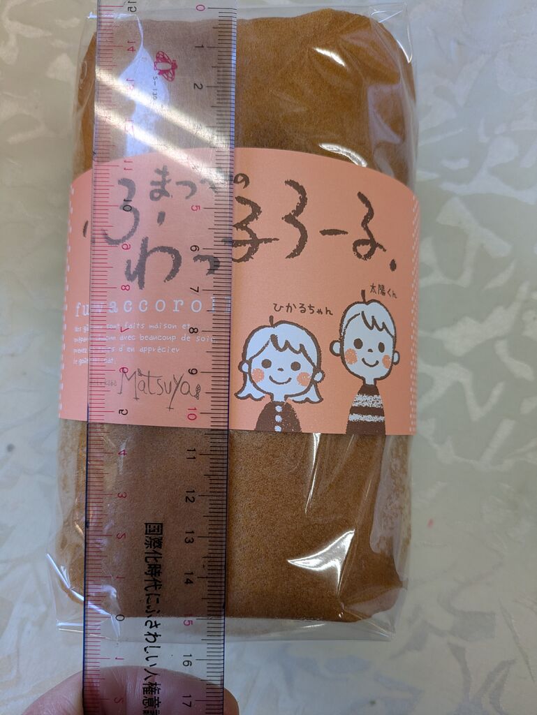 お客様から差し入れで松屋さんの「ふわっ子ろーる」を頂きました。ズシリと重いロールケーキ。長さは15センチですがロールが大きいのでカットして乗せるお皿は小皿では無理かも。セロハンの上からでもふわふわ具合が分かるロールケーキでした。 (訪問:2026/01/07)