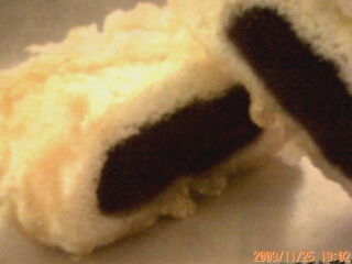 以前テレビで紹介されてたのを見て「食べてみたい!」と思ってました。ひとつ180円で少し高めかなと思いましたが、サクサクの衣は塩味が効いてて、中は甘さ控えめ餡が入ってて、絶妙のコンビネーションでした。少し肌寒かったので、アツアツの揚げゆばまんじゅう、体に染みわたる美味しさでした。 (訪問:2010/05)