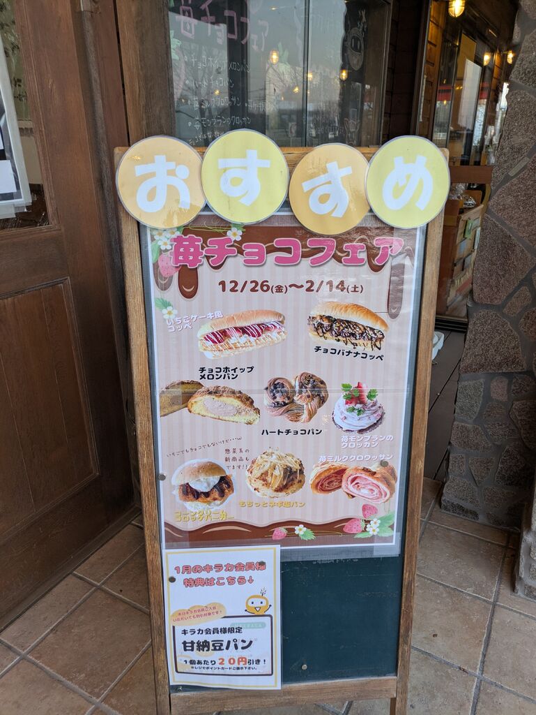 干支パンとチョコのパンと新商品で大人気だという塩ミルクのパンを購入しました。干支パンはかわいらしい馬の顔で子供が喜んで食べていました。他の2つもとてもおいしく、特に塩ミルクはまた食べたいなぁと思いました。 (訪問:2026/01/16)