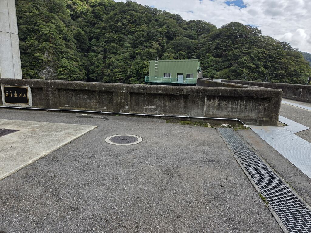 この日の五十里湖は、大変落ちついた佇まいを見せてくれました。資料館では、五十里湖の歴史や、建設過程を学べる事が出来る映像を見る事が出来て大変勉強になりました。本体着工1950年、完成年1956年だそうです。 (訪問:2025/09/21)