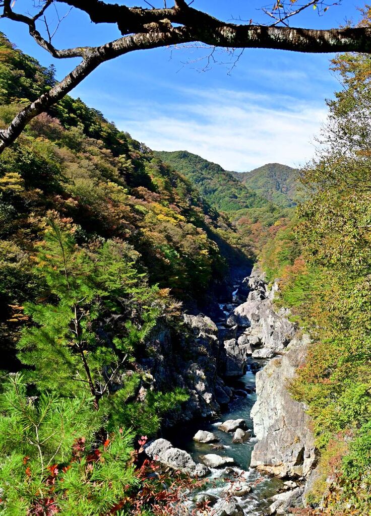 生まれて初めてむささび橋を渡りました。古い橋なので、古風な感じがいたします。橋の中程で橋の上から見た紅葉時の山々と渓谷美を本格的カメラで撮影されている方がおりました。流石に大自然の中にいる素晴らしい景観を満喫出来ました。流石にここまで遊歩道を歩く人はいないかなと思ったのですが、結構いましたね。歩きなれた靴か、本格的山歩き用の靴で来られる事をおすすめ致します。 (訪問:2025/11/04)