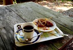 今日は龍王峡へ。 これまでは 虹見橋までしか行ったことがなかったのですが、今回は思い切って むささび橋まで歩いてみることにしました。 龍王峡の紅葉はちょうど 五~六分ほど。 来週あたりが見ごろのピークになりそうです。 木道や階段が整備されているとはいえ、道のりはなかなか険しく ゆっくりと山道を進みます。 むささび橋のたもとには、まさに「ひなびた」という言葉がぴったりの小さなお茶屋さんがあり、香ばしい味噌田楽と温かいコーヒーでひと休み。 静かな峡谷の空気とあいまって ほっと心が和むひとときでした。 (訪問:2025/10/29)