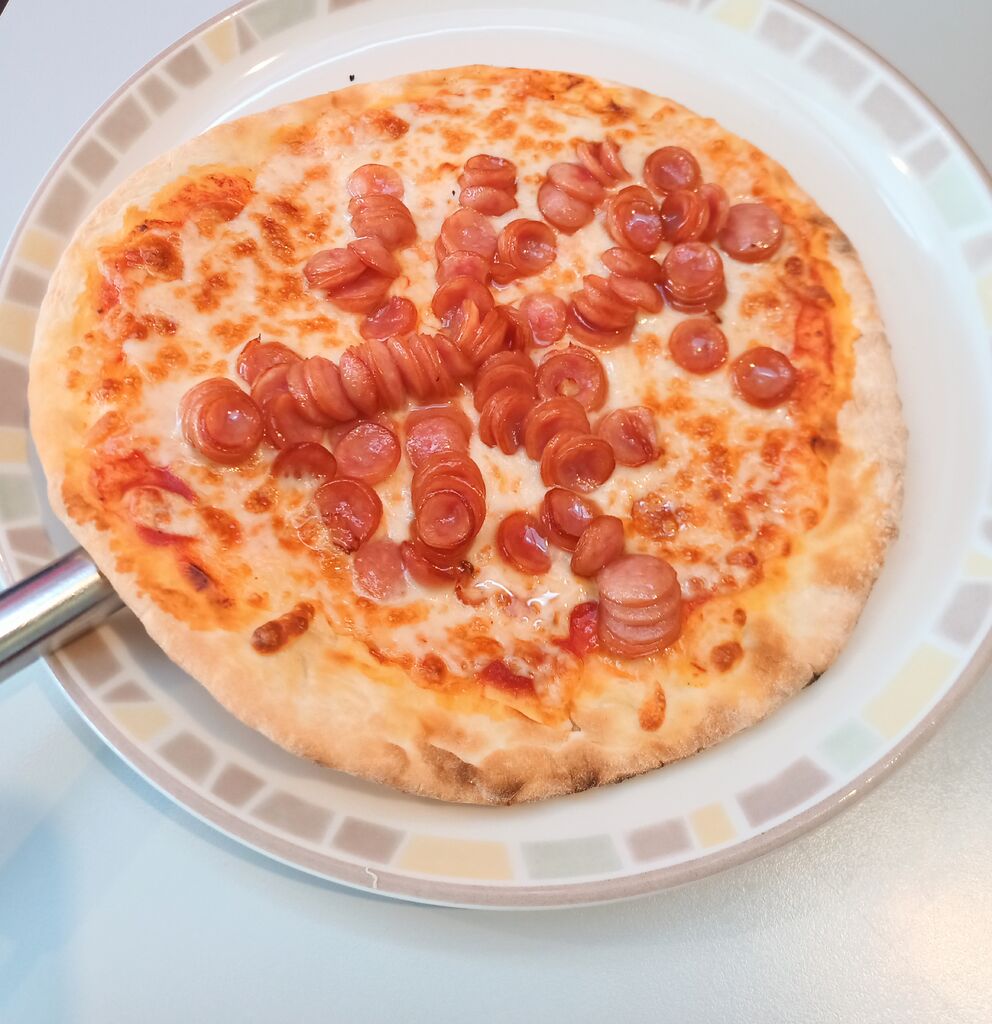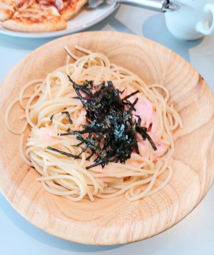 「タラコソースシシリー風」「ソーセージのピザ」とドリンクバーを注文しました。たらこパスタはサイゼリアのパスタメニューで一番人気だそうです。チーズとソーセージがたっぷり乗ったピザも美味しかったです。 (訪問:2025/07/05)